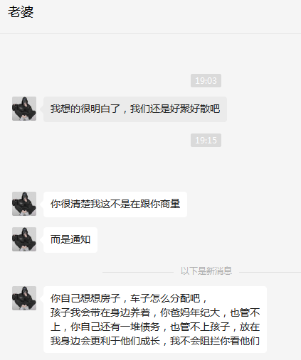 我想了好多,离婚真的是对彼此都好吧,对于她来说,脱离了一个不关心她,不关心家庭的人,还年轻,可以去寻找自己的幸福。对于我来说,我都一无所有了,我还有什么好担心的,有两条路可走,要么彻底摆烂,躺平,该吃吃该喝喝,自私自利一辈子就这样了,还能有更大的挫折么,活到不想活的时候了,找一个没人的地方自我了结还来的痛快。要么就努力一回,背负的金钱债,人情债,通过努力还上,没有家庭的牵绊,剩下的就没日没夜的挣钱了。